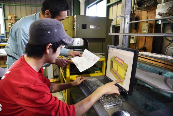 当社の最も大きな特色の一つが、製造ラインにおける3D CADデータの共有でしょう。当社の作業風景を見た方の多くが、製品のバラ図が無く、全ての作業者がモニターに映し出される3D CADデータを見ながら作業を行っていることに驚かれます。しかもその3D CADデータは、部品ごとではなく、製品が完成した状態で共有されています。このため、実際の製品の組み上がり後に部品同士が干渉するようなこともなく、作業者も完成形をイメージしながら個々の部品の加工を行えるため、結果的にミスも減り、製品品質の向上と納期の短縮に大きな役割を果たしているのです。